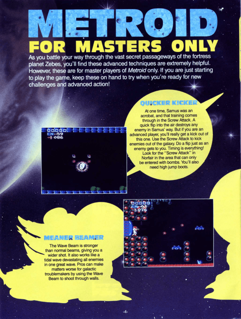 The newsletter hyped Samus Aran’s mission to infiltrate Zebes and confront the monstrous Mother Brain, presenting Metroid as the ultimate challenge for gamers. It teased a labyrinth of hidden passages, a high-tech arsenal waiting to be unlocked, and mutant enemies lurking around every corner. Fans couldn’t resist the pull. Pages dedicated to tips and strategies encouraged readers to master Samus’s upgrades—like the Long Beam, Ice Beam, and Screw Attack—that made her a powerhouse. The promise of uncovering secrets in areas like Brinstar and Norfair turned Metroid into more than a game, it was a rite of passage for anyone claiming to be a true NES master.