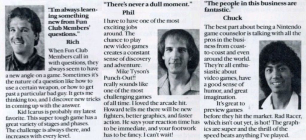 The Fun Club also highlighted the work of Nintendo’s game counselors, who were crucial resources for gamers navigating the challenges of 8-bit adventures. This team of counselors, accessible via a toll-free hotline, provided advice and solutions for players stuck in challenging parts of games like The Legend of Zelda, Kid Icarus, and Mike Tyson’s Punch-Out!!. The newsletter featured profiles on some of the counselors, such as George, who enjoyed the mix of combat and strategy in The Legend of Zelda, and Rich, who was a fan of the varied stages in Kid Icarus. Phil, a Punch-Out!! enthusiast, described the game as one of the most challenging titles he’d played.