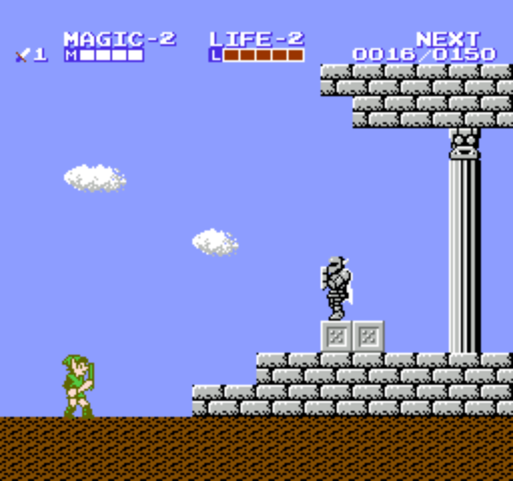 This side-scrolling view wasn’t just for show, it enabled a completely different style of combat and platforming. Link could now attack high while standing or low while crouching, and his shield would automatically block incoming projectiles or attacks based on his stance. This required timing, positioning, and learning enemy patterns. You could also learn powerful new sword techniques from hidden swordsmen. This was a far cry from the simpler, direct combat of the first game and demanded a new level of skill.