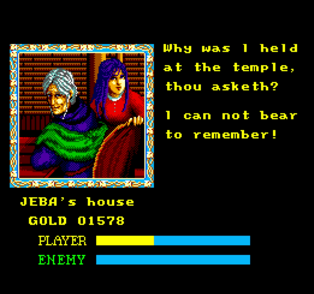 Beyond Aron Christian, the game introduces a charming cast of characters who, even in their 8-bit simplicity, managed to etch themselves into our memories. We met the wise elder, whose cryptic words always pointed us in the right direction, and the enigmatic Raba, whose mysterious presence deepened Esteria’s lore. And who could forget poor Feena, whose tragic plight pulled at our heartstrings? These fleeting encounters, though brief, were like little warm embers in the cooling world of Esteria, making Aron’s journey feel less like a solitary quest and more like an adventure we were all experiencing with friends. Each pixelated face added another piece to the puzzle, drawing us deeper into a world that felt both vast and intimately personal.