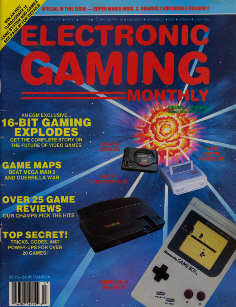 It’s the sweltering summer of 1989 and the video game publishing industry is in full gear to deliver coverage on one of the most pivotal moments in gaming history, the dawn of the 16-bit era. The new kids on the block, EGM and GamePro, have published their second issues, and they’re wasting no time drawing the battle lines. Meanwhile, Nintendo Power, celebrated its first anniversary by unveiling the Game Boy and a portable future far beyond the living room.