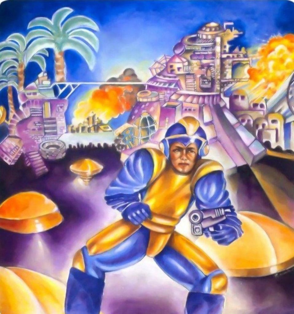 To understand why this title screen felt like a revolution, you have to remember the baffling, almost nightmarish image that came before it. You have to go back to the video rental store, the air thick with the smell of plastic VHS cases. Your eyes scan the rows of Nintendo games, past the familiar faces of plumbers and princesses, and then you see it. The cover of the first Mega Man. A strange, middle-aged man in a baggy yellow and blue suit, holding a pistol, stands awkwardly against a backdrop of palm trees. Artwork that was reportedly created in just six hours by an artist who had never even seen the game.