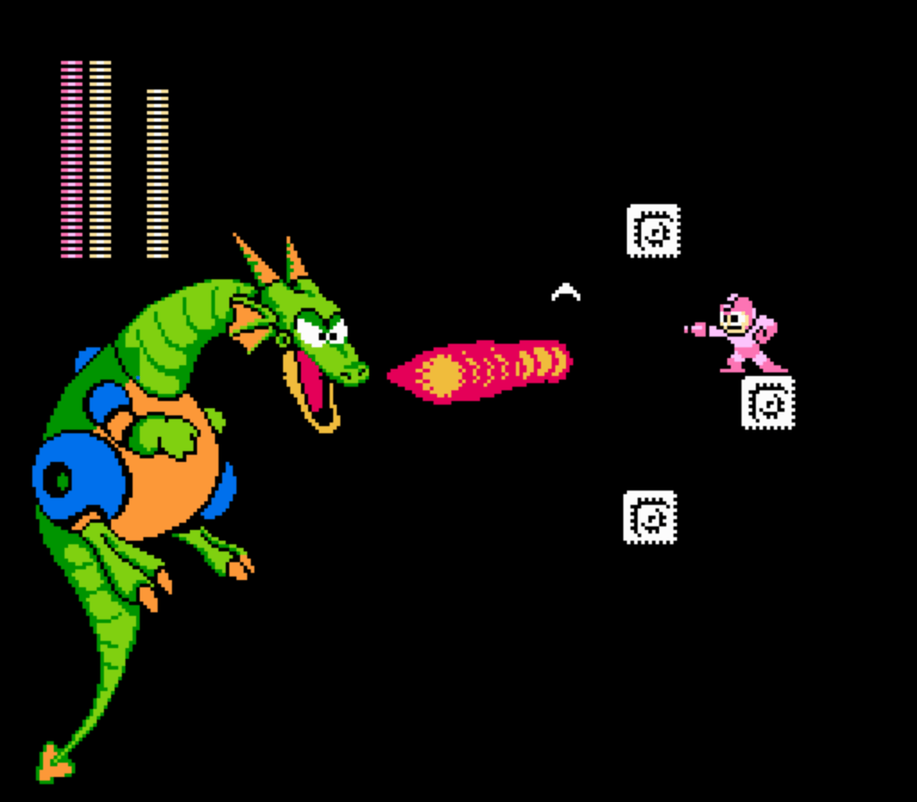 The culmination of the initial assault is a moment burned into the memory of every player: the Mecha Dragon. After you climbed a ladder into the sky and deftly traversed a set of small disappearing blocks, a colossal, screen-filling dragon emerged from the darkness. It was a true spectacle on the NES, a moment of pure 8-bit awe and terror. Its fiery breath could kill you in seconds, and your only path to victory is by traversing a series of tiny blocks suspended over a bottomless pit. It was a legendary difficulty spike, a test of everything you had learned, and conquering it was a massive payoff that signaled you were truly ready to face Wily himself.